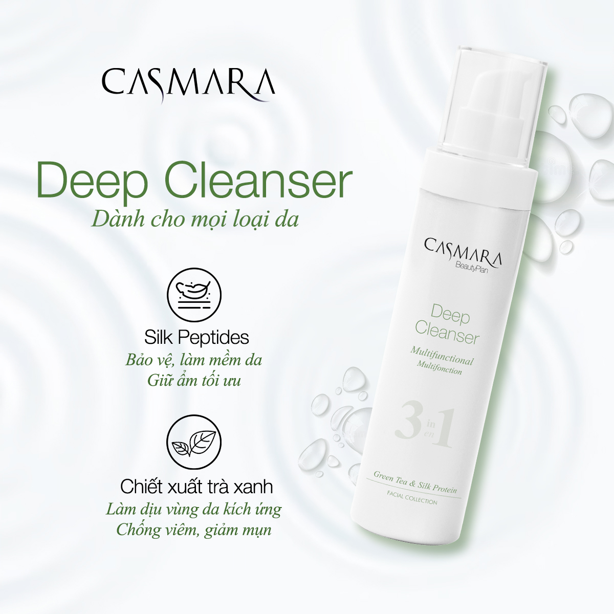 Thứ ba, sữa rửa mặt 3 trong 1 Casmara chứa chiết xuất trà xanh, nên có khả năng làm dịu những vùng da đang kích ứng và hỗ trợ , thích hợp với các làn da nhạy cảm, dễ kích ứng, dễ nổi mụn.