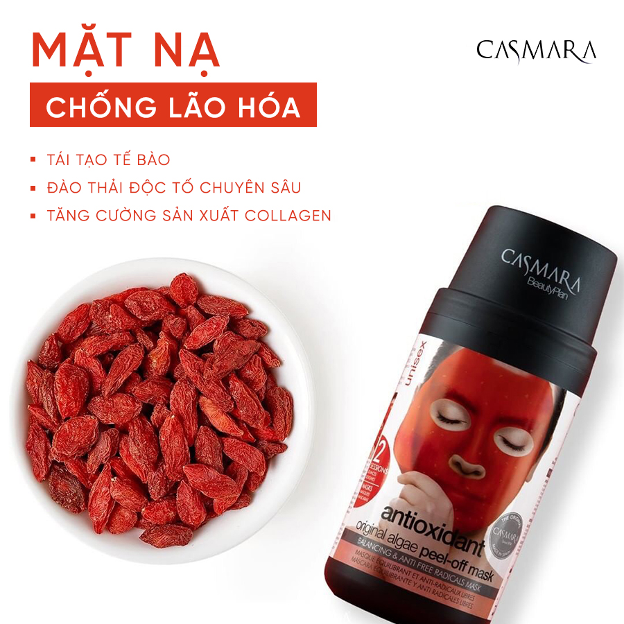 Dựa trên bí mật đó, mỹ phẩm Casmara đã cho ra đời mặt nạ chống lão hóa Casmara "Antioxidant Mask Kit", chứa chiết xuất quả kỷ tử giúp ngăn ngừa các dấu hiệu lão hóa, làm đầy nếp nhăn, làm sáng những vùng da xỉn màu, mang đến làn da căng bóng, mịn màng.