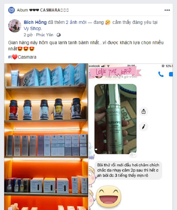 Đặc biệt hơn, chỉ sau vài tiếng mua hàng, VYVY Cosmetics đã nhận được phản hồi ngay về cảm nhận khách hàng đối với sản phẩm CASMARA. Đây cũng là một trong những niềm vui nhỏ góp phần cho thành công của cửa hàng cũng như đại diện hãng.