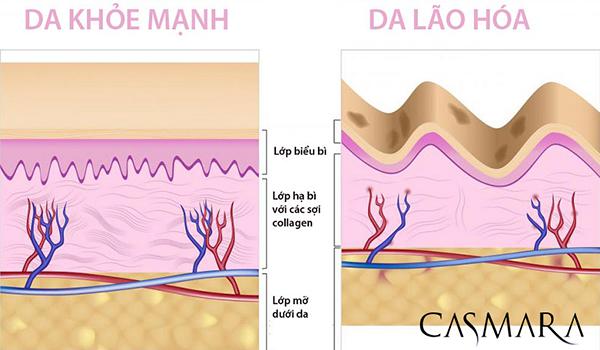 Quy luật tự nhiên khiến cho các sợi collagen và elastin giảm dần về cả số lượng và chất lượng. Tốc độ này tăng lên theo thời gian, collagen càng thiếu hụt thì dấu hiệu lão hóa càng rõ, khiến da mất đi sự nâng đỡ chắc chắn. Sợi collagen và elastin bị đứt gãy khiến da chùng xuống, hình thành rãnh – chính là nếp nhăn.