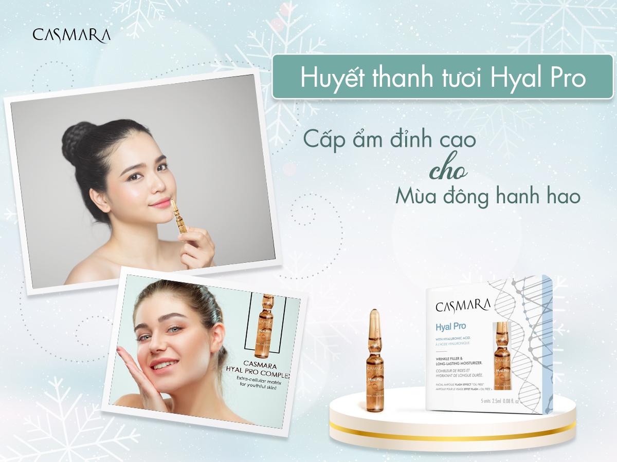 Huyết thanh ống cấp ẩm Hyal Pro giúp bổ sung lượng HA cho da. Đặc biệt, đây là những phân tử có trọng lượng thấp và rất thấp, có khả năng thẩm thấu cao, hoạt động ở hai cấp độ tại lớp hạ bì của da. Đó là lí do vì sao huyết thanh ống cấp ẩm CASMARA lại giúp chống nhăn, làm giảm các nếp nhăn từ bên trong và ngăn chặn nếp nhăn xuất hiện lại hiệu quả hơn hẳn so với các sản phẩm chứa HA khác.