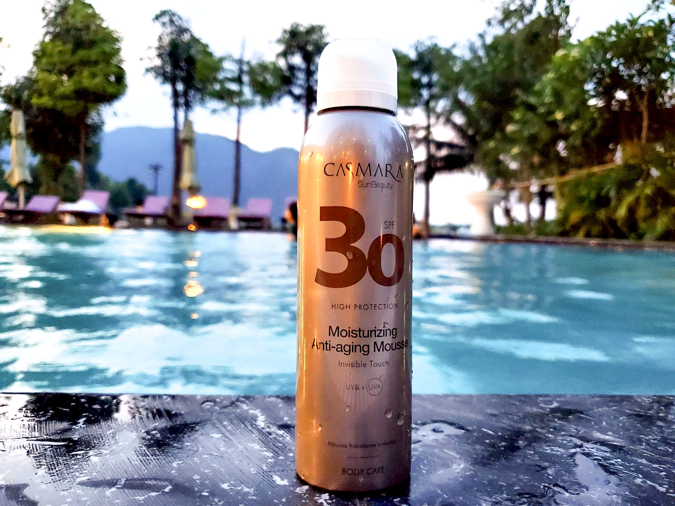 Moisturizing Anti-aging Mousse – vượt qua tiêu chuẩn của một sản phẩm chống nắng thông thường. Với chỉ số SPF 30 cùng khả năng bảo vệ cực cao “HIGH PROTECTION”, sản phẩm giúp bảo vệ các tế bào da khỏi bị hư hại do tiếp xúc với tia cực tím và hồng ngoại. Không chỉ vậy, trong KCN này của Casmara chứa đồng thời 2 thành phần chống lão hóa siêu đỉnh là NIACINAMIDE và L-CARNOSINE, giúp ngăn ngừa và cải thiện mạnh mẽ các dấu hiệu lão hóa, làm săn chắc sâu, phục hồi làn da và ngăn ngừa sự xuất hiện của các vết nám trên da.