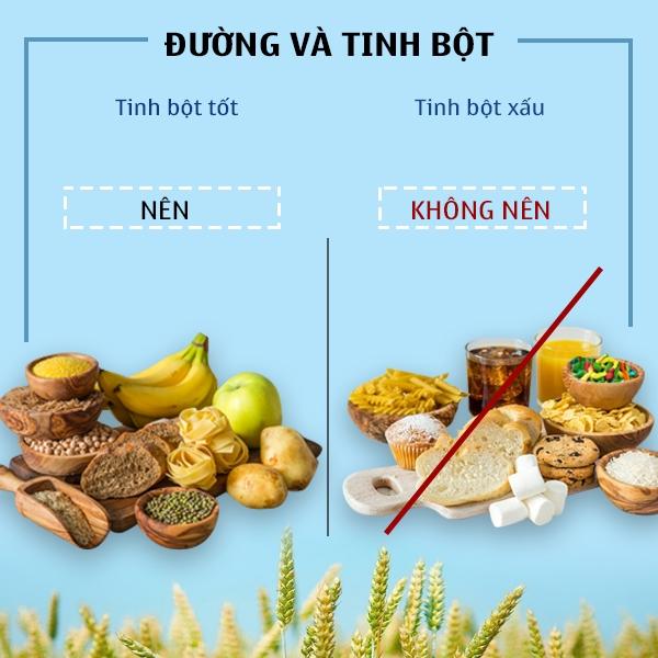 - Hạn chế carb xấu: cơm trắng, bánh mì trắng, nước hoa quả đóng hộp, bánh kẹo,…