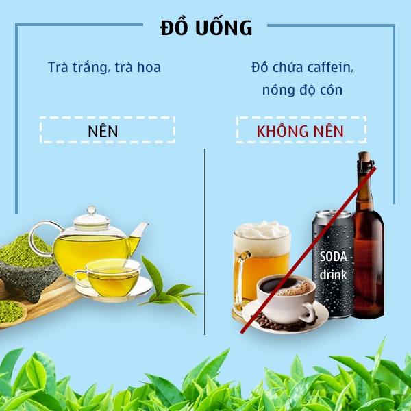 - Hạn chế đồ uống có cồn. Nếu bắt buộc phải uống thì nên chọn loại có nồng độ thấp và uống với liều lượng ít và tần suất thấp.