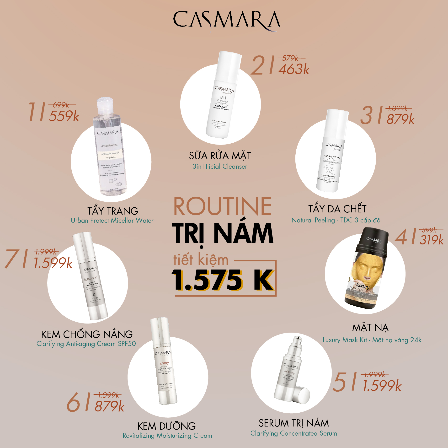 Với routine trị nám dưới đây, Casmara Việt Nam sẽ gợi ý bạn những sản phẩm phù hợp để có thể mang đến làn da trắng hồng, sạch thâm, mờ nám, chỉ sau 28 ngày.